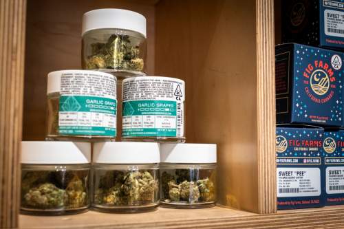 Cannabis products are available for sale at the Bloom Room at Union Square, San Francisco, on January 11, 2022. Photo by Martin do Nascimento of CalMatters